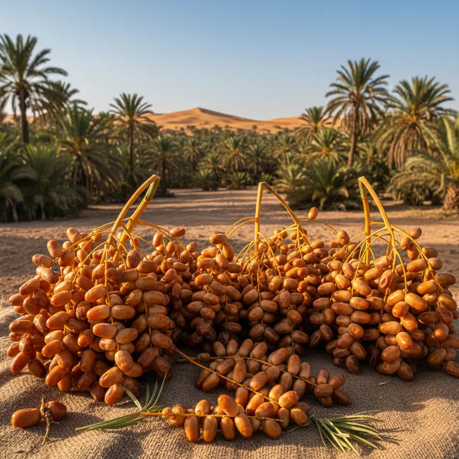 Deglet Nour Datteln kommen aus dem Tolga-Tal in Algerien, einer Oasenregion mit leicht erhöhter Luftfeuchtigkeit, die verhindert, dass die Früchte beim Reifen austrocknen. Genau dieses Mikroklima macht den Unterschied: Die Datteln bleiben weich, saftig und voll natürlicher Honigsüße – unbehandelt, so wie sie am Baum gewachsen sind.