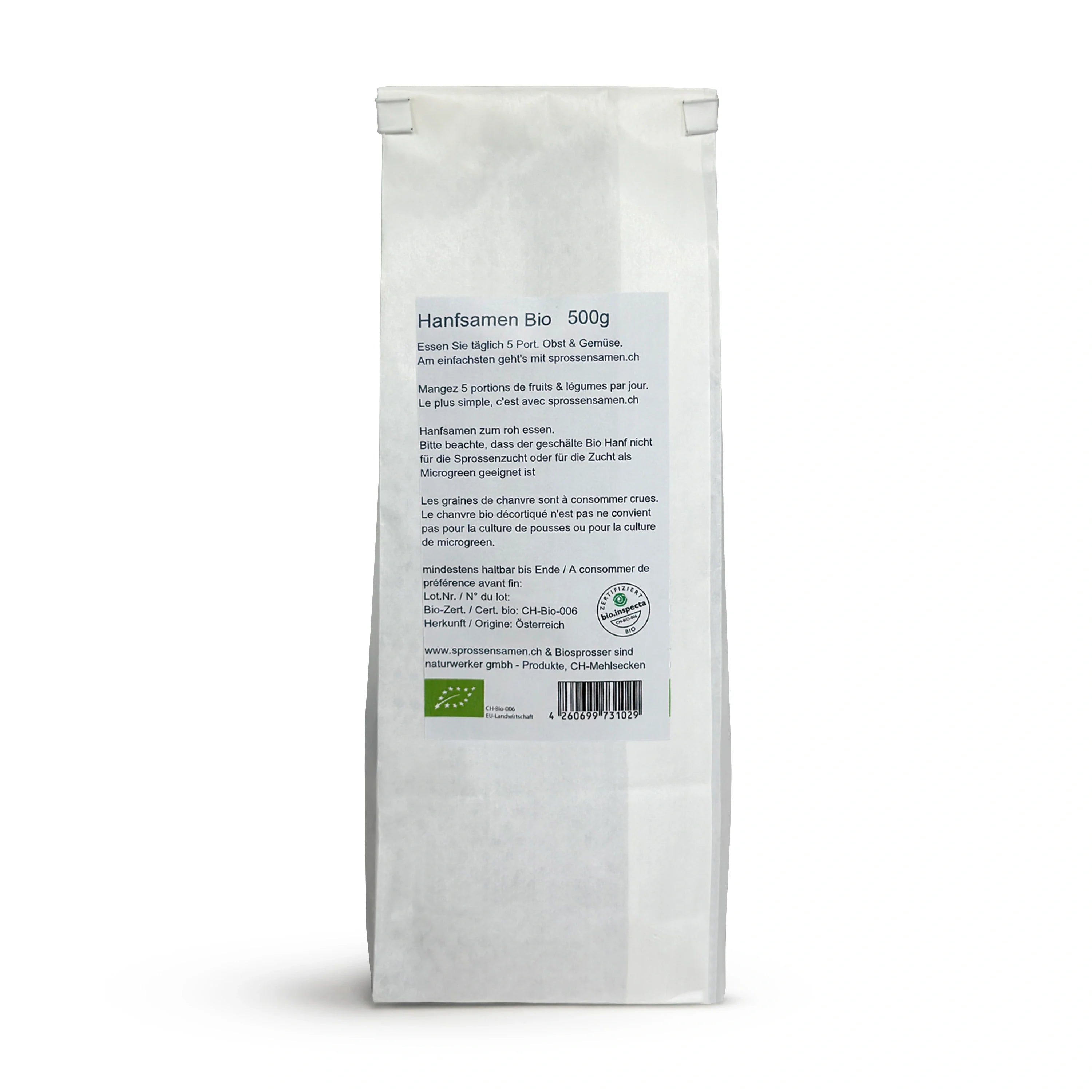 Bitte beachte, dass der geschälte Bio Hanf nicht für die Sprossenzucht oder für die Zucht als Microgreen geeignet ist, da er sorgfältig geschält wurde.