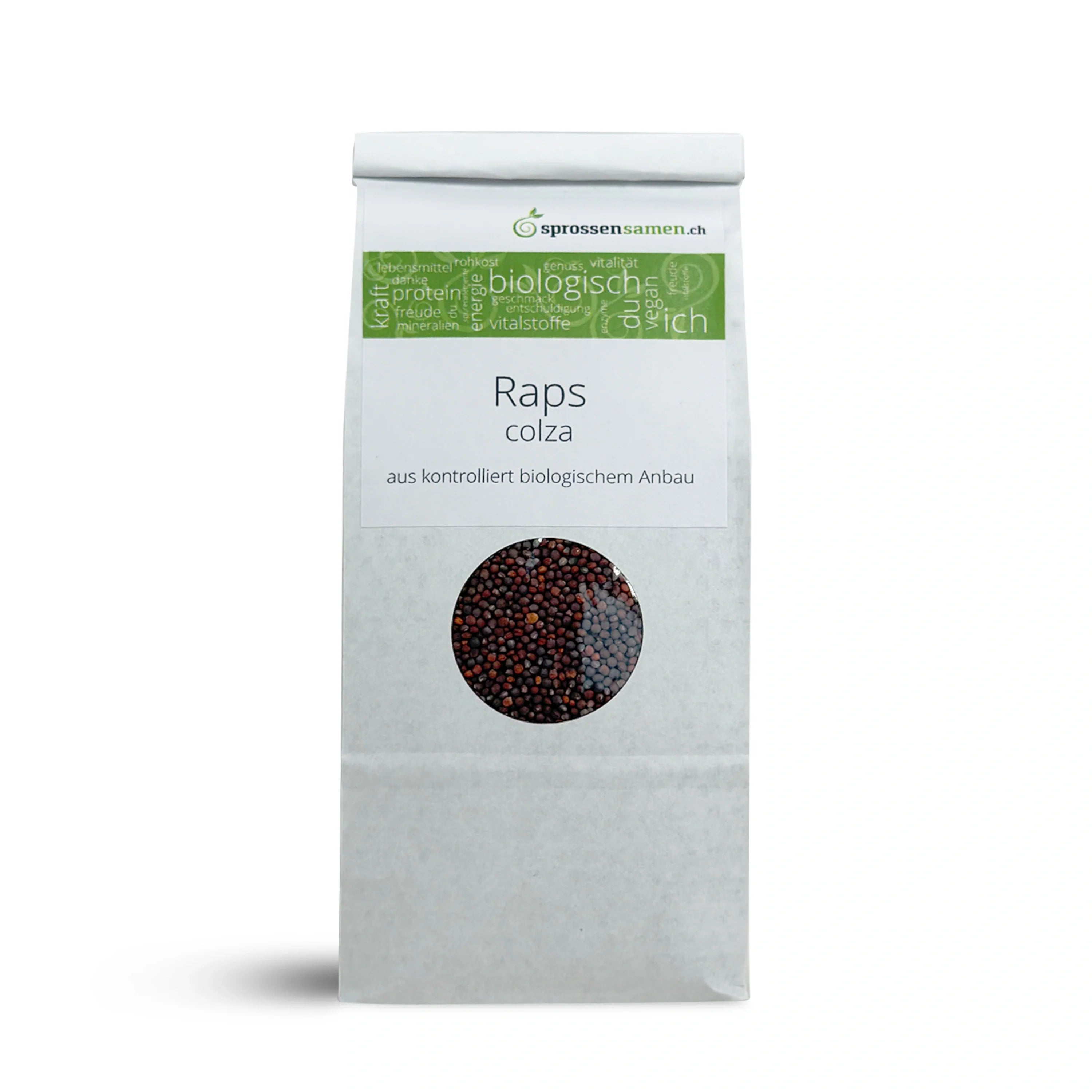 Raps enthält natürlicherweise einfach und mehrfach ungesättigte Fettsäuren, Vitamin C, Vitamin K, B-Vitamine, Kalzium, Magnesium, Phosphor, Eisen, Kalium, Zink sowie sekundäre Pflanzenstoffe wie Glucosinolate.