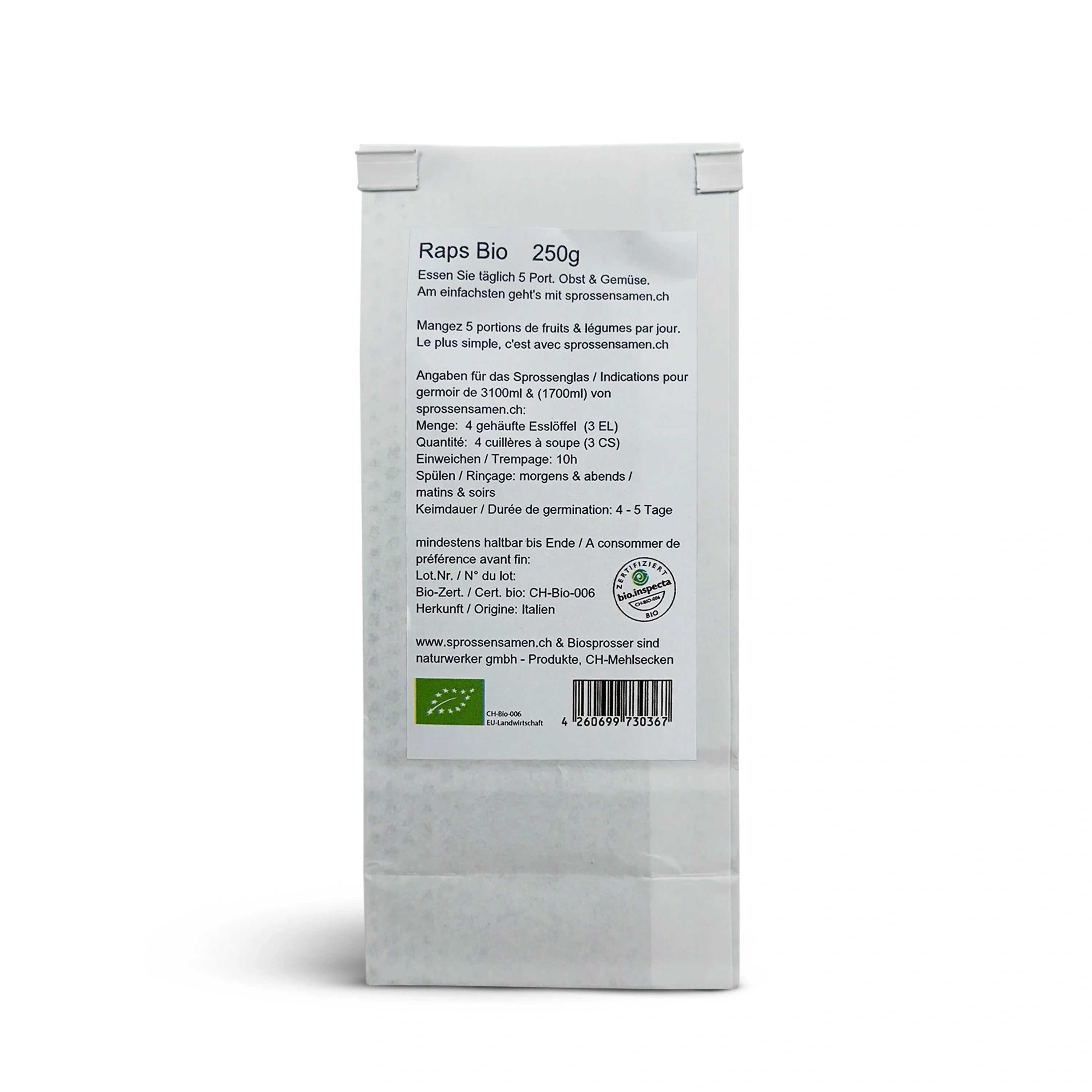 Bio Raps Sprossen selber ziehen – Hochwertige, kontrolliert biologische Raps Sprossensamen & Keimsaat für Microgreens und das Keimglas