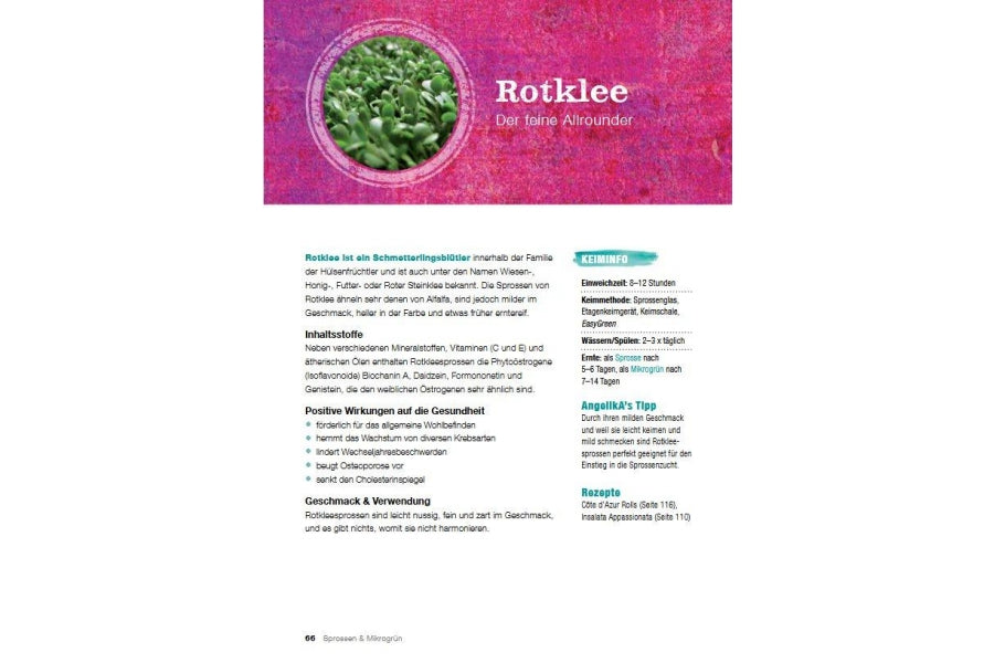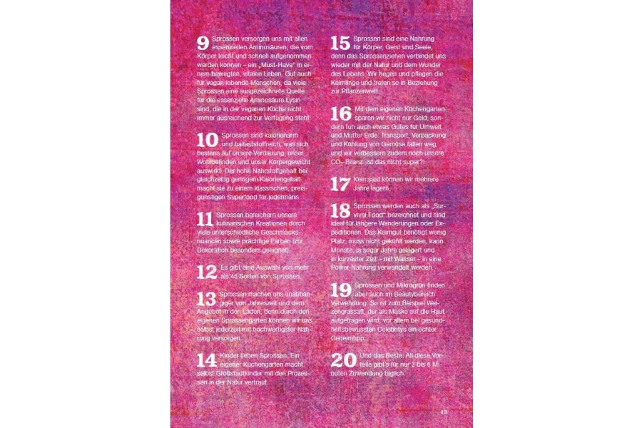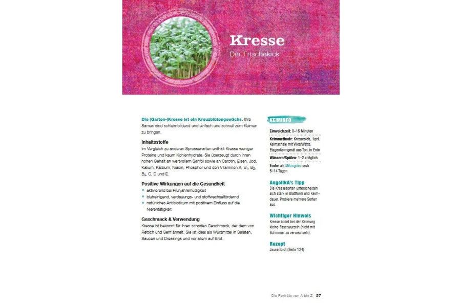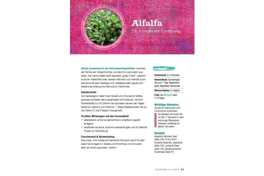 - Die Inhaltsstoffe der einzelnen Sprossen und Wirkungen auf unseren Körper sind gut beschrieben.